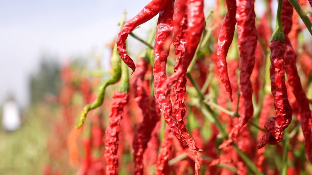 眼下,新疆巴音郭楞蒙古自治州焉耆縣的14萬(wàn)畝工業(yè)辣椒進(jìn)入采收季,種植戶搶抓晴好天氣采摘辣椒。