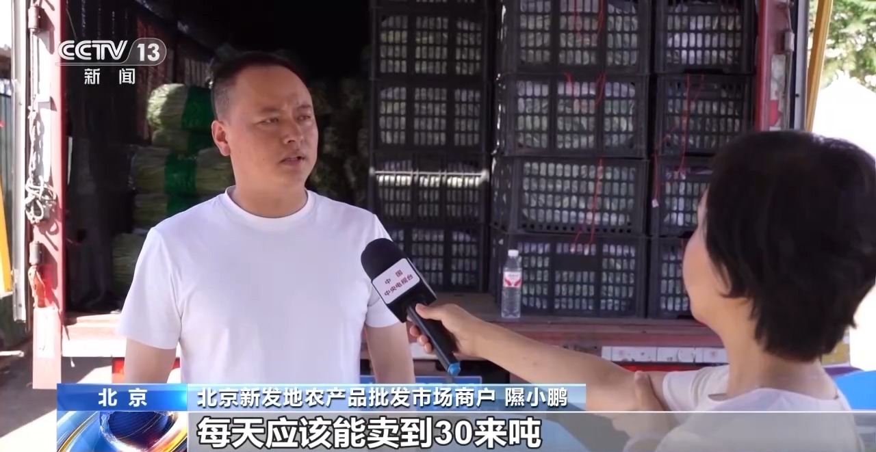 北京新發(fā)地農(nóng)產(chǎn)品批發(fā)市場(chǎng)商戶 隰小鵬:往年我們這時(shí)候每天應(yīng)該能賣到30來(lái)噸,但是最近就是賣15噸左右吧。因?yàn)楫a(chǎn)地量小,咱們來(lái)市場(chǎng)價(jià)格高了,賣得也少。