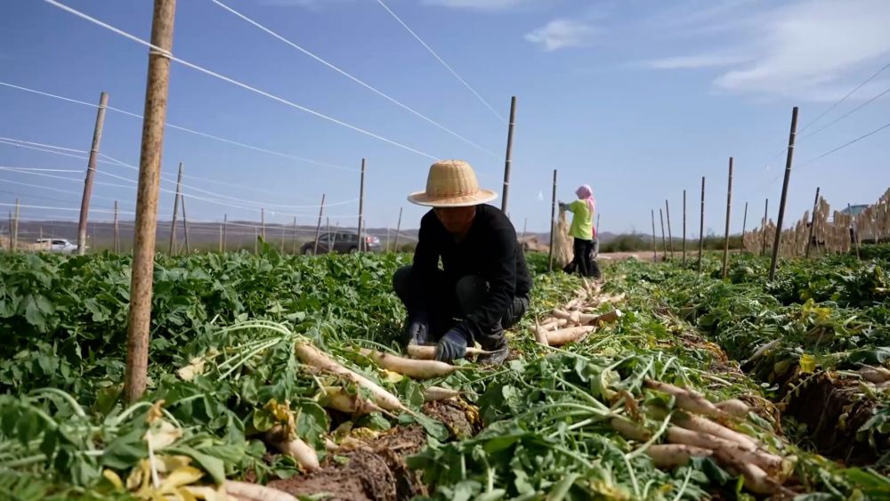 在寧夏吳忠市紅寺堡區(qū)大河鄉(xiāng)平嶺子村,1500畝長(zhǎng)美蘿卜迎來(lái)豐收季。