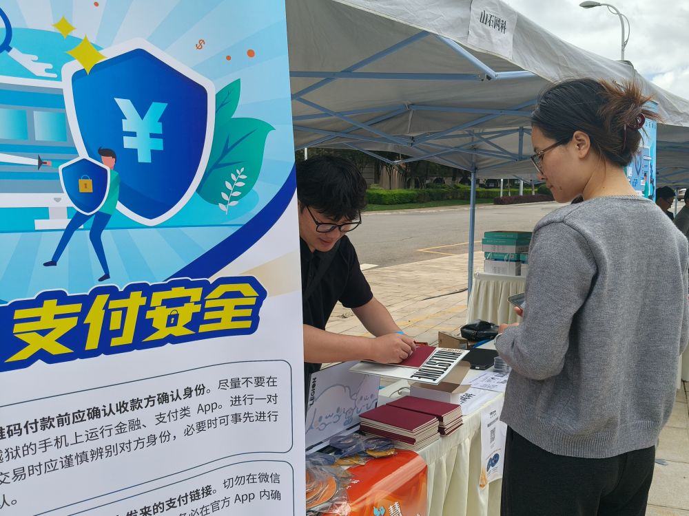 校園的露天廣場上還安排有網(wǎng)絡安全知識趣味問答活動,吸引學生參與,讓他們在輕松愉快的氛圍中鞏固了反詐知識。還有工作人員向路過的學生發(fā)放反詐宣傳手冊。