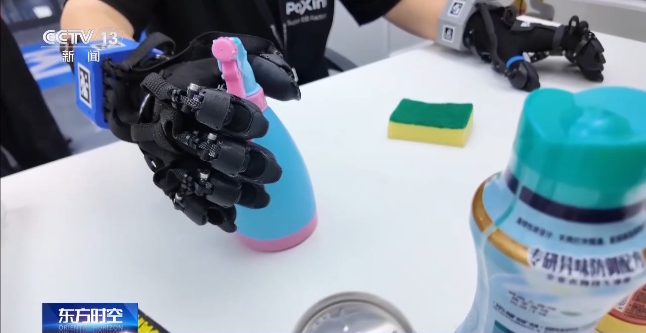 就像大語(yǔ)言模型依賴大規(guī)模文本語(yǔ)料,機(jī)器人要從“會(huì)想”邁向“會(huì)做”,同樣離不開(kāi)海量真實(shí)世界的經(jīng)驗(yàn)數(shù)據(jù)做訓(xùn)練。能實(shí)時(shí)記錄觸覺(jué)、力覺(jué)和動(dòng)作細(xì)節(jié)的特制“數(shù)采手套”,就是連接真實(shí)世界和數(shù)據(jù)世界的介質(zhì)。