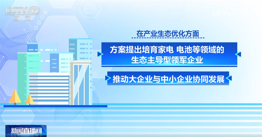 在產(chǎn)業(yè)生態(tài)優(yōu)化方面,方案提出培育家電、電池等領域的生態(tài)主導型領軍企業(yè),推動大企業(yè)與中小企業(yè)協(xié)同發(fā)展;分批打造輕工業(yè)特色產(chǎn)區(qū),引導企業(yè)向中西部轉移,淘汰落后產(chǎn)能;通過產(chǎn)融合作、知識產(chǎn)權質押貸款等方式,培育世界一流企業(yè)和專精特新“小巨人”企業(yè)。
