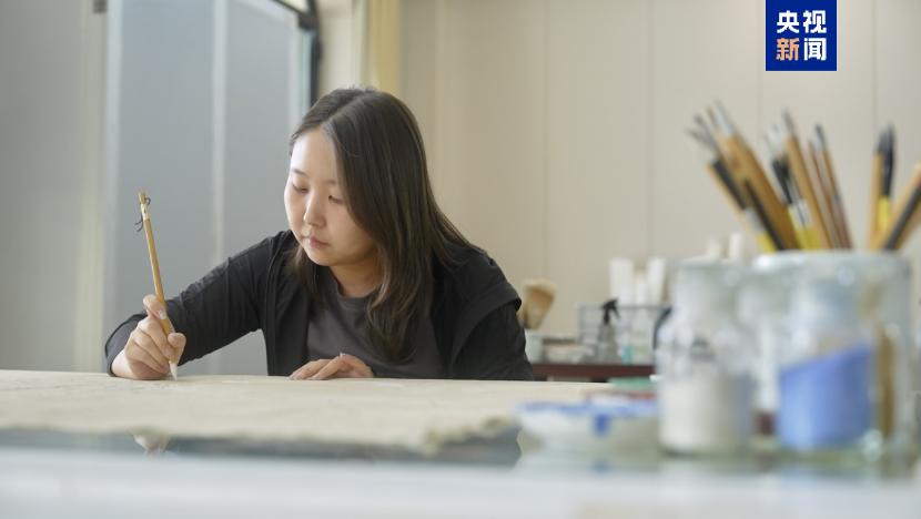“年輕一代在臨摹創(chuàng)作的過程中,會刻下屬于我們的時代烙印,展現(xiàn)不同的審美與藝術(shù)理念?!笨俗螤柺哐芯克佬g(shù)師艾潤說。她和同事們用細致入微的筆觸,為壁畫延續(xù)生命,讓石窟在新時代綻放新的光彩。
