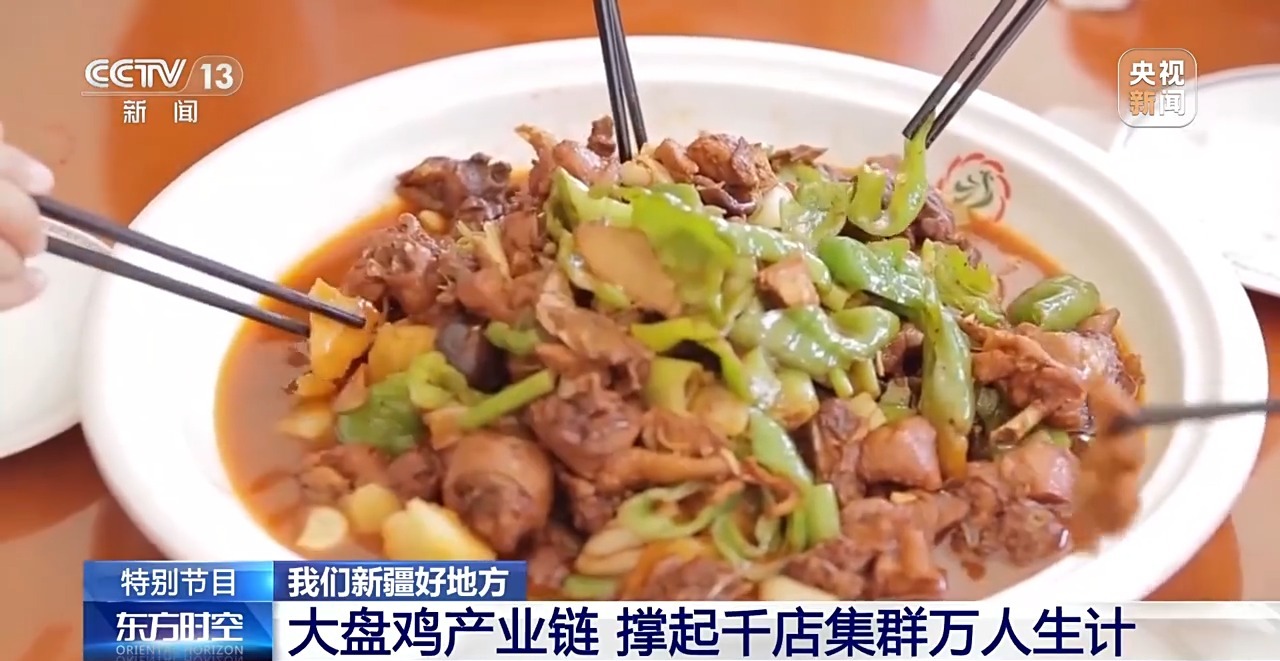 總臺(tái)央視記者 張叢婧:在新疆沙灣市的“大盤(pán)雞一條街”,這里幾乎家家戶戶都在做大盤(pán)雞,此時(shí)整條街都彌漫著香味。很多人知道新疆大盤(pán)雞,但可能并不知道,它的發(fā)源地就在這里。