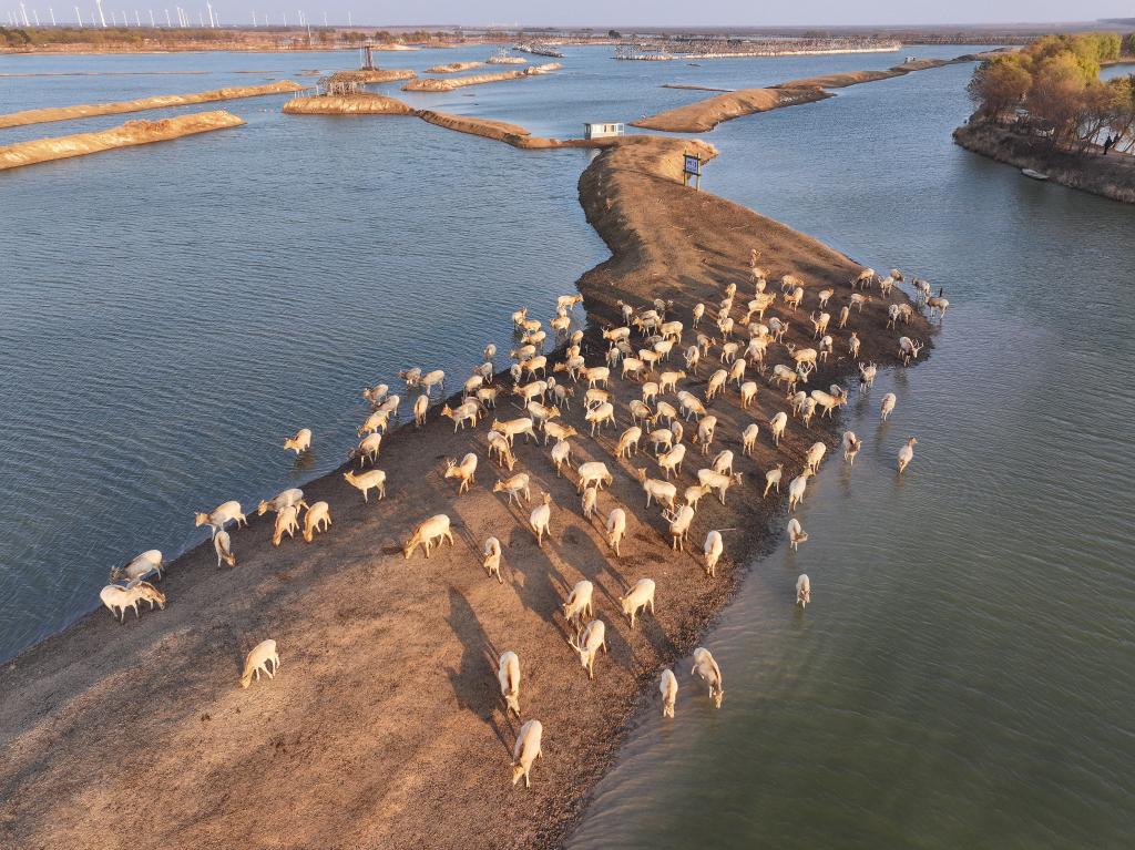 記者24日從在江蘇鹽城召開的2025全球?yàn)I海論壇開幕式獲悉,棲息在江蘇大豐麋鹿國家級(jí)自然保護(hù)區(qū)的麋鹿數(shù)量從1986年引進(jìn)時(shí)的39頭增至8500余頭。