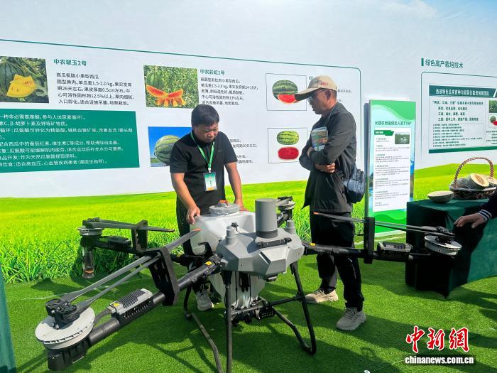 9月23日,新疆慶?!爸袊?guó)農(nóng)民豐收節(jié)”活動(dòng)在昌吉州舉行,圖為現(xiàn)場(chǎng)展出的農(nóng)業(yè)植保無(wú)人機(jī)。 左丹丹 攝