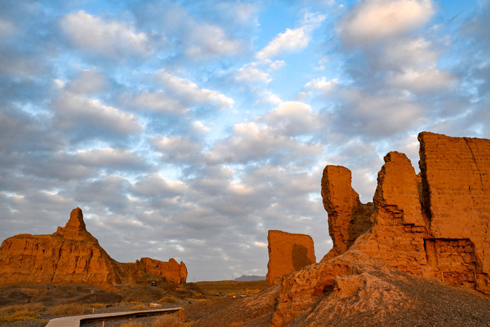 “克孜爾尕哈”意為“紅色哨卡”。夕陽下,這座漢代軍事設施的夯土墻體被映照得棱角分明,泛著淡淡的金紅色。“站在這里,仿佛看到了當年的烽火傳訊?!币幻慰透锌卣f。