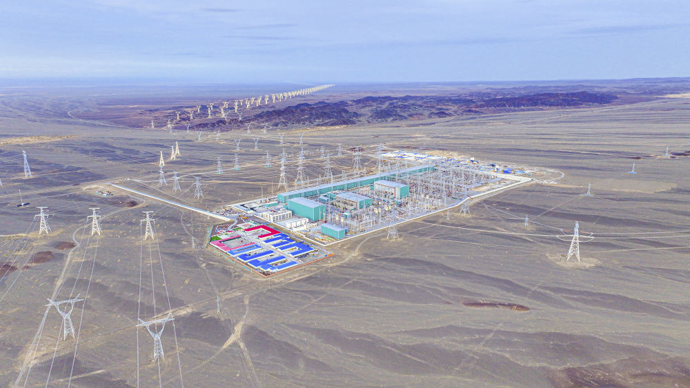 在新疆哈密地區(qū)拍攝的哈密±800千伏巴里坤換流站(4月17日攝,無人機照片)。