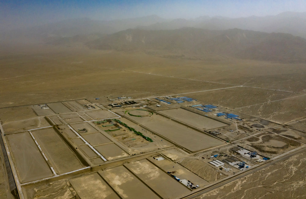 9月22日在新疆巴音郭楞蒙古自治州若羌縣拍攝的中國綠發(fā)新疆中綠電若羌400萬千瓦光伏項目(無人機照片)。該項目每年可發(fā)電69.08億千瓦時,滿足南疆200萬戶家庭用電需求,減排208.24萬噸煤耗。