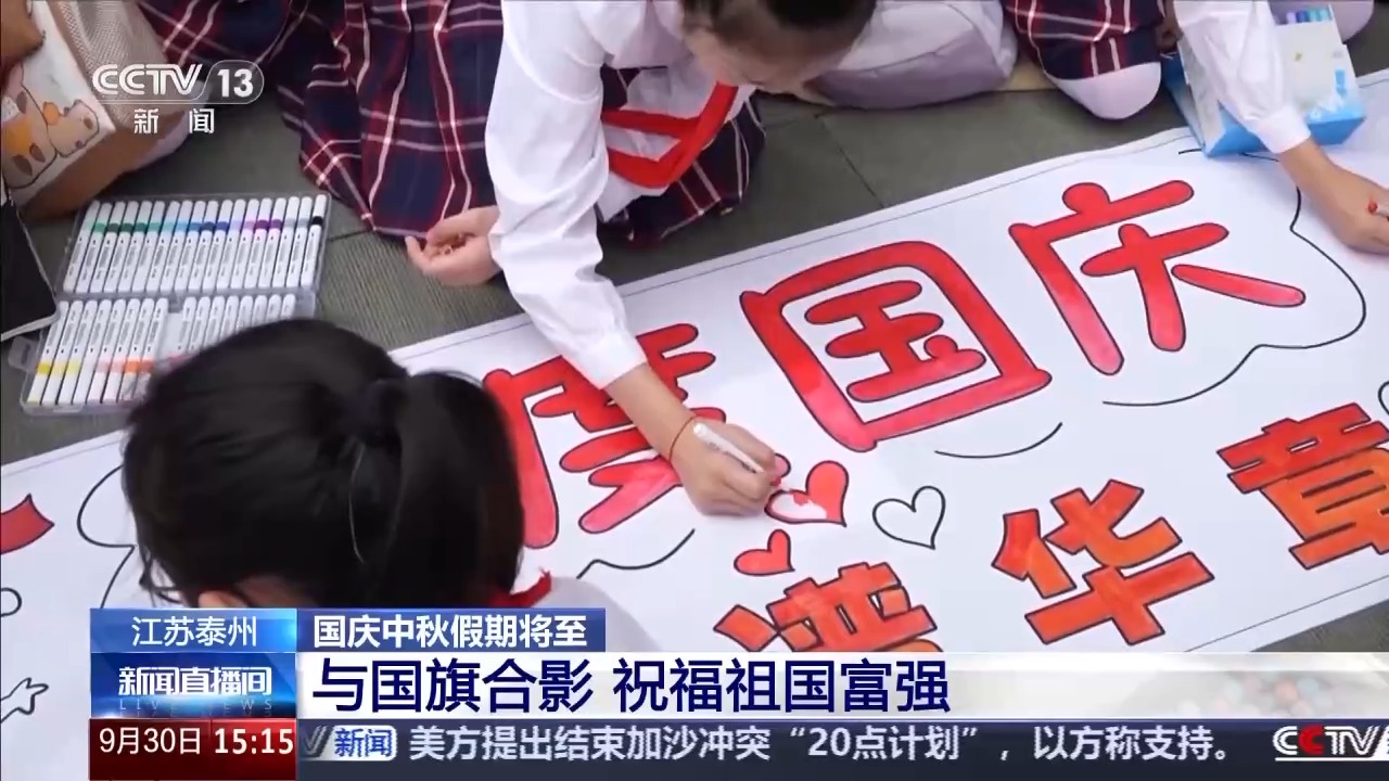 為迎接國慶,這幾天江蘇泰州的主要道路、社區(qū)廣場上都掛滿了國旗。當?shù)剡€啟動了“我與國旗合個影”的打卡活動,吸引了許多市民游客參與。