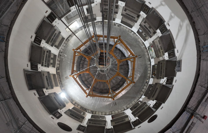 這是2025年10月1日在安徽合肥未來大科學(xué)城緊湊型聚變能實(shí)驗(yàn)裝置(BEST)建設(shè)現(xiàn)場拍攝的成功落位安裝的杜瓦底座(無人機(jī)照片)。新華社記者 周牧 攝