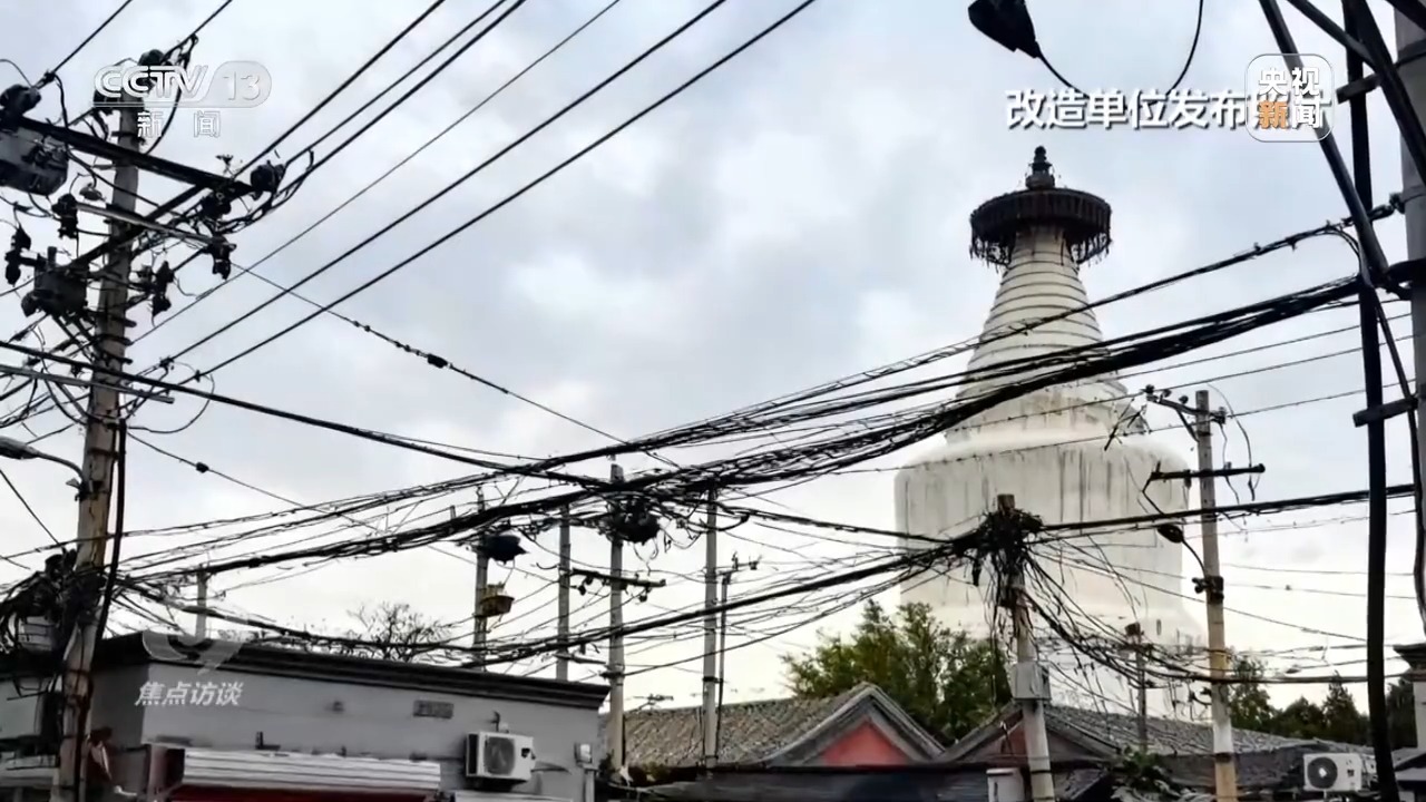 微改造,怎么改?它能給人們帶來(lái)些什么?來(lái)逛逛老北京的胡同。北京西城白塔寺,現(xiàn)在的熱門(mén)網(wǎng)紅景點(diǎn),也是北京老城25片歷史文化保護(hù)區(qū)之一。但一張老照片上,房屋破損嚴(yán)重,混亂的電線搭得像蜘蛛網(wǎng)。