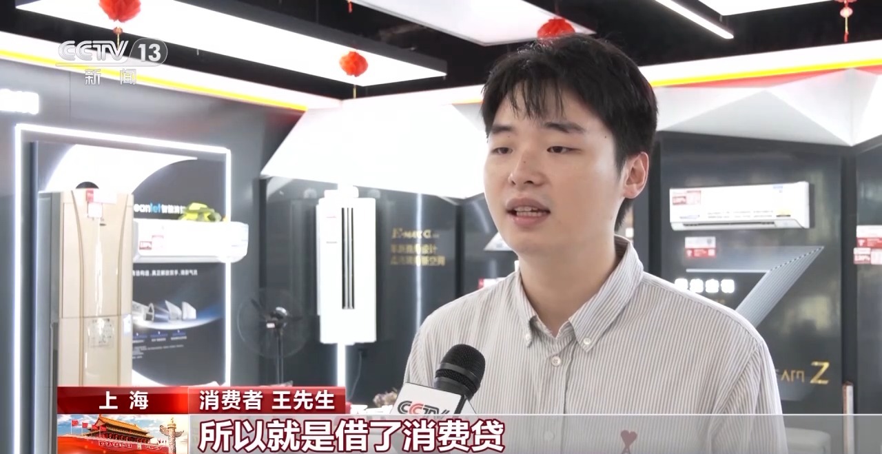 消費(fèi)者 王先生:我想一次性把家電買齊,所以借了消費(fèi)貸。有國家的補(bǔ)貼,緩解了我的資金壓力,其次就是它操作其實比較方便,比較快速地就能把我想買的都買齊。