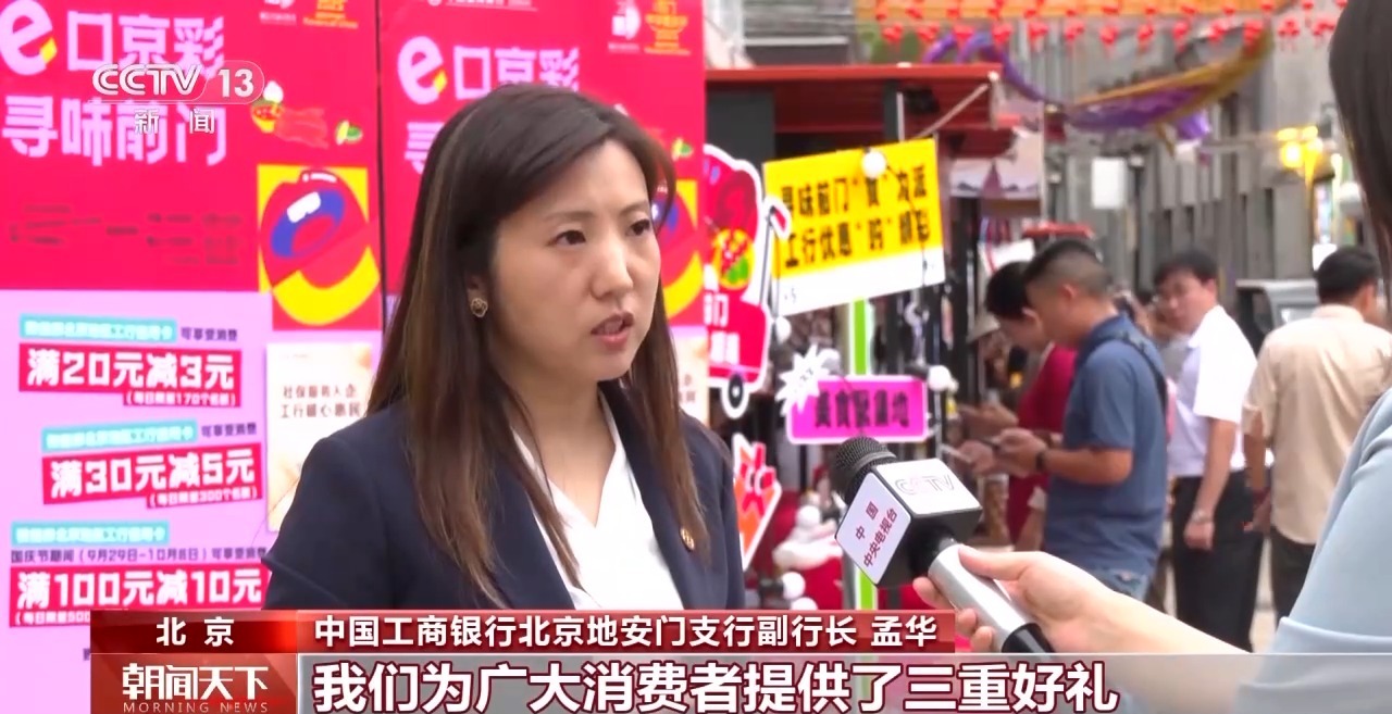 中國工商銀行北京地安門支行副行長 孟華:我們?yōu)閺V大消費(fèi)者提供了三重好禮,除了傳統(tǒng)的消費(fèi)滿減活動以外,我們還疊加了數(shù)字人民幣的優(yōu)惠支付,同時還設(shè)計了數(shù)字人民幣的打卡活動。