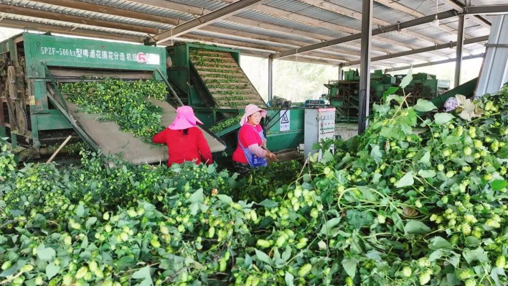 金秋時節(jié),新疆生產(chǎn)建設兵團第八師石河子市142團種植的6000畝啤酒花喜獲豐收,鮮花畝產(chǎn)量近1000公斤,烘干后干花達250公斤,每畝純收益約1500元。