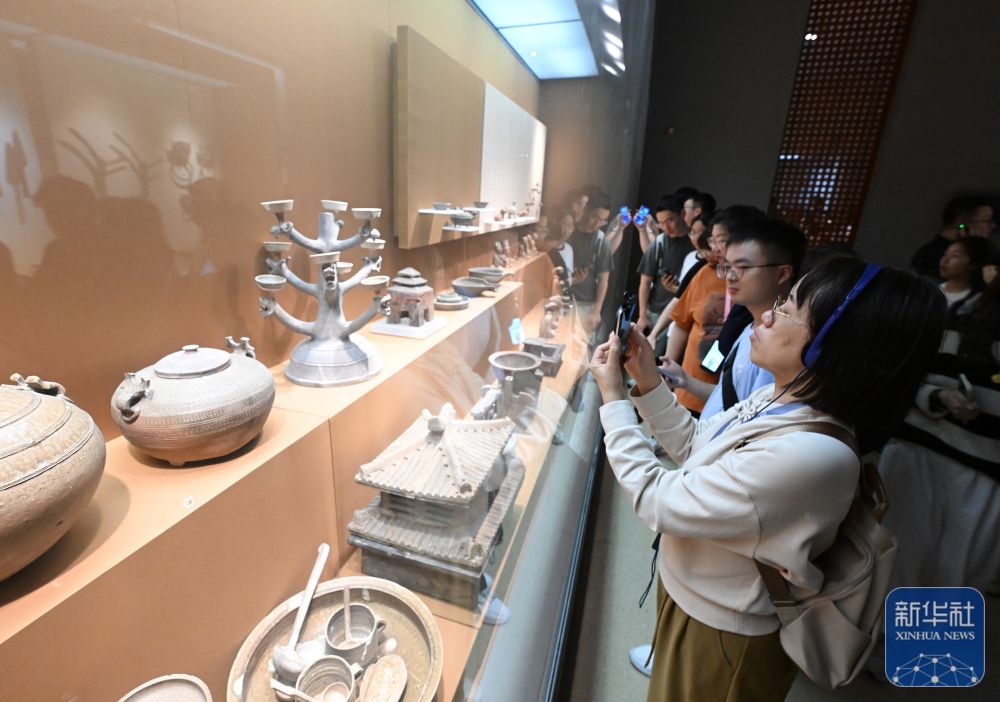 ↑ 10月6日,游客在長(zhǎng)沙簡(jiǎn)牘博物館參觀(guān)。新華社記者 陳振海 攝