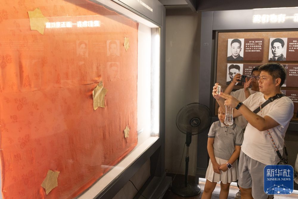 ↑ 10月6日,小朋友在家長(zhǎng)的帶領(lǐng)下參觀(guān)重慶歌樂(lè)山革命紀(jì)念館。新華社記者 陳誠(chéng) 攝