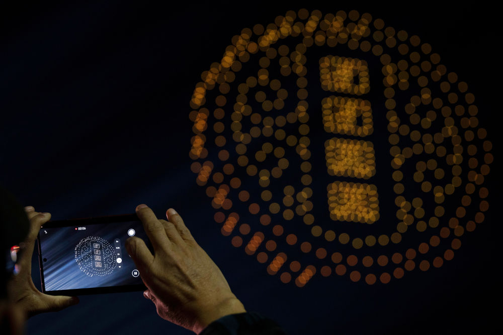 10月4日晚,在浙江省金華市武義縣花田美地景區(qū),精彩的無人機表演為游客呈現(xiàn)了一場視覺盛宴。新華社發(fā)(張建成攝)