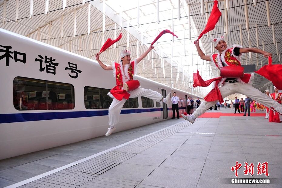 圖為2012年7月1日西安至延安動(dòng)車(chē)組列車(chē)首發(fā)。唐振江 攝