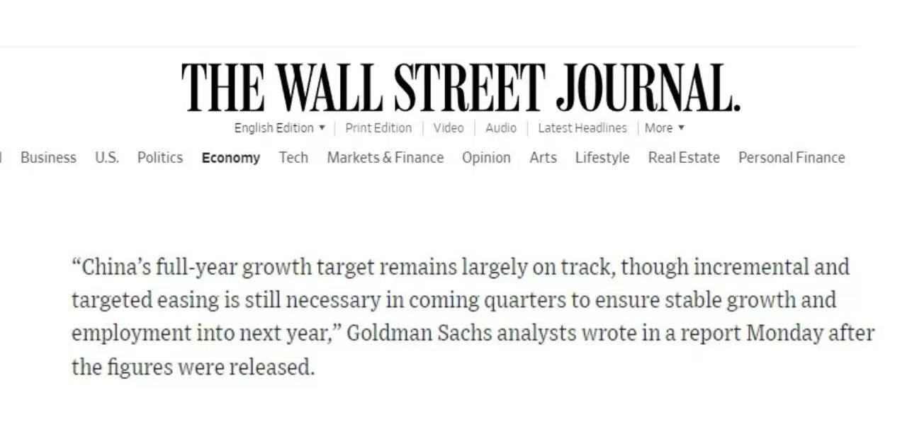 美國(guó)《華爾街日?qǐng)?bào)》報(bào)道顯示,2023年前三季度中國(guó)GDP同比增長(zhǎng)5.2%,意味著"5%左右"的年度增長(zhǎng)目標(biāo)已基本達(dá)成。報(bào)道援引高盛分析師觀(guān)點(diǎn)稱(chēng),雖然未來(lái)幾個(gè)季度仍需實(shí)施漸進(jìn)式、結(jié)構(gòu)性的寬松政策,但全年經(jīng)濟(jì)增速仍將總體符合預(yù)期。