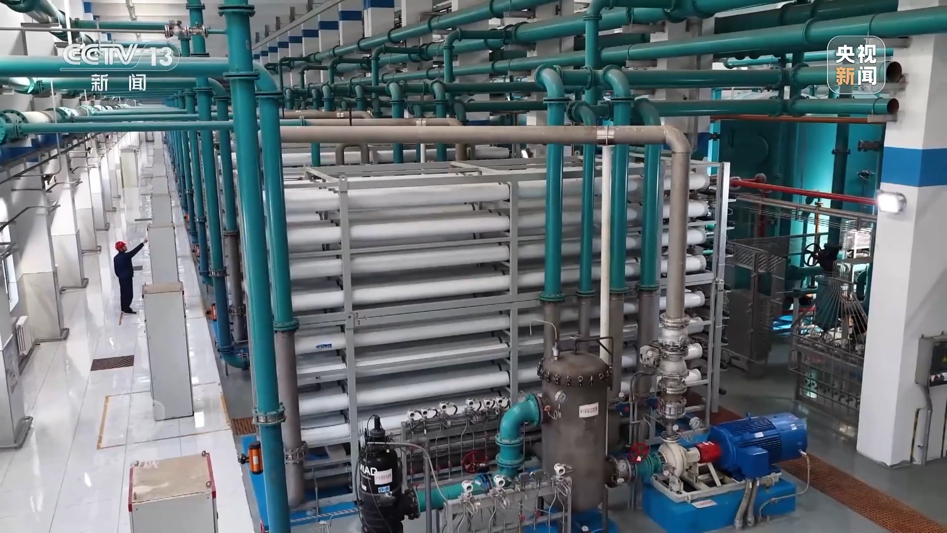在依海而建的天津南港工業(yè)區(qū)內(nèi),有著目前全國單機(jī)規(guī)模最大的反滲透海水淡化和綜合利用一體化項(xiàng)目。5條生產(chǎn)線,日產(chǎn)量達(dá)15萬噸,可以滿足68萬城鎮(zhèn)居民的單日用水量,全年可替代、節(jié)約淡水資源超過5000萬噸。