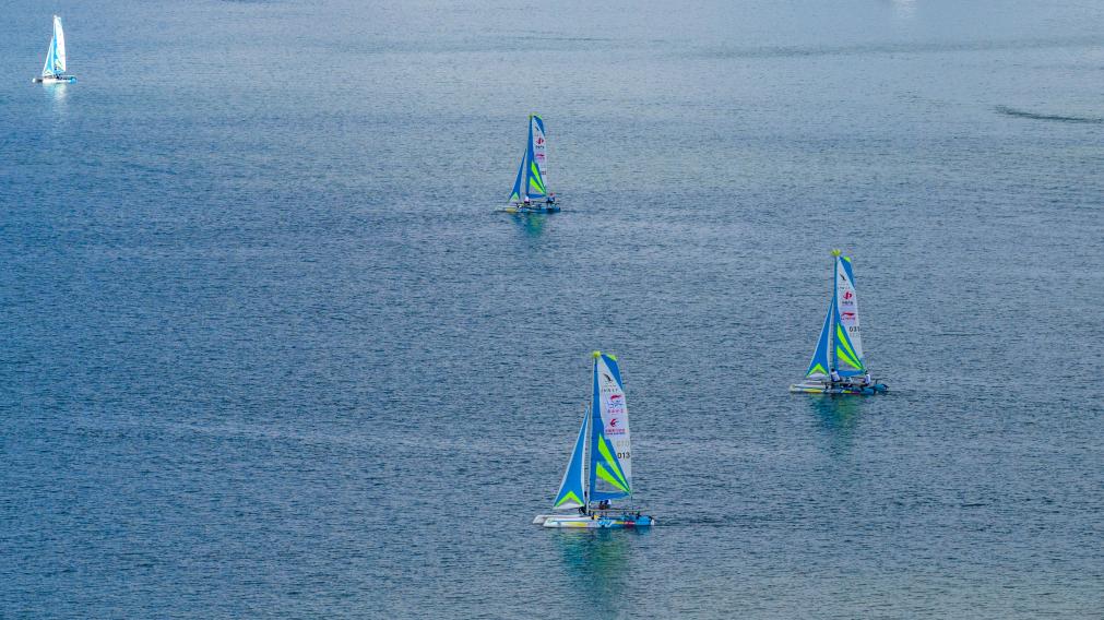 10月25日,中國萬水千帆賽大理站在云南省大理白族自治州開賽,圖為參賽船只從出發(fā)點下水。新華社記者 胡超 攝