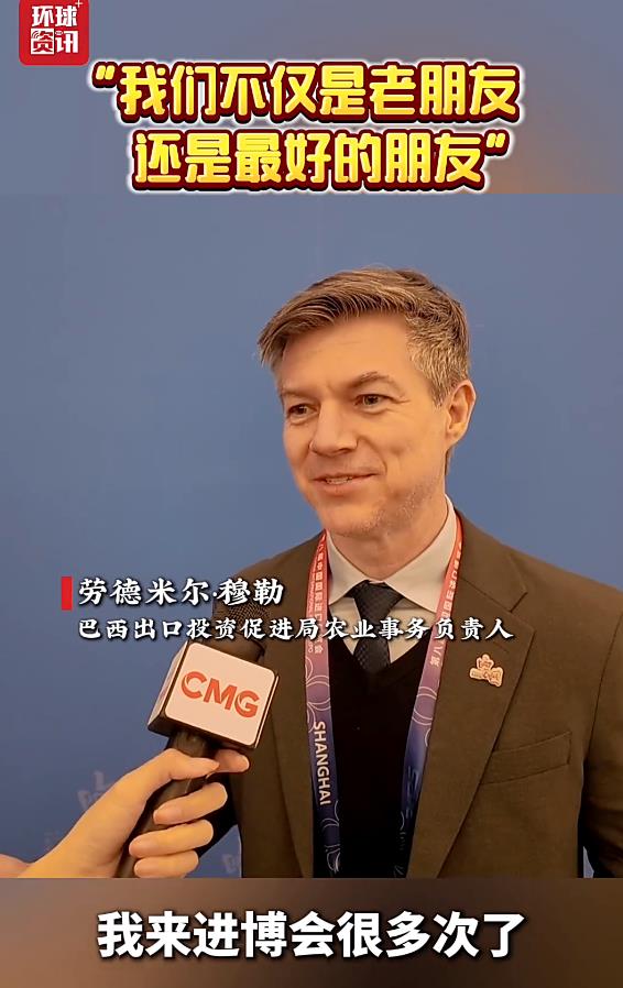 巴西出口投資促進(jìn)局農(nóng)業(yè)事務(wù)負(fù)責(zé)人勞德米爾·穆勒接受總臺環(huán)球資訊廣播記者采訪時表示,巴西每年都積極參與進(jìn)博會,不僅是進(jìn)博會的老朋友,更是最好的朋友。