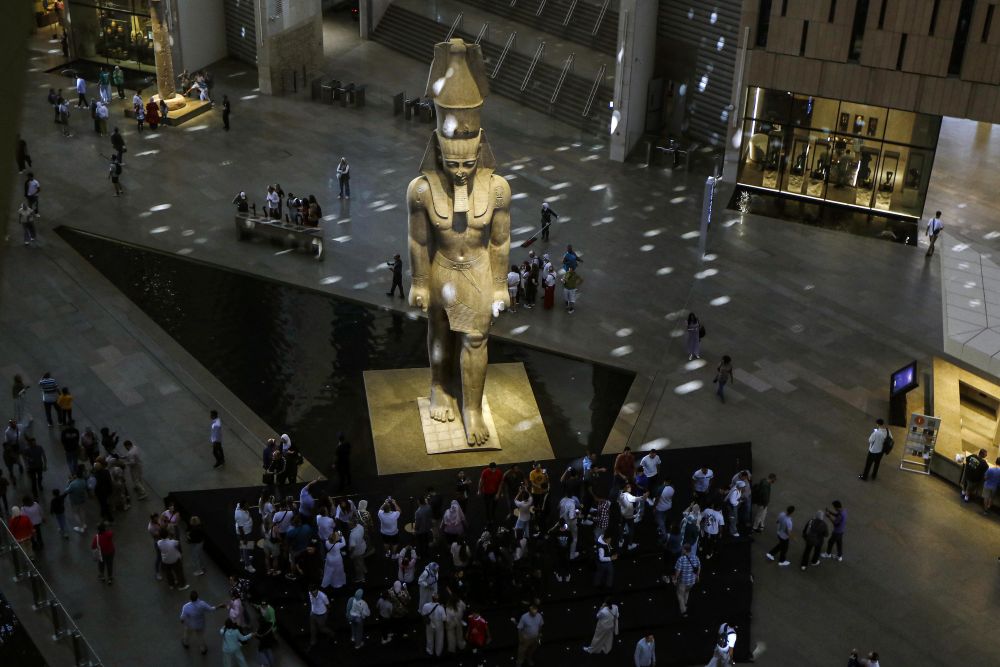 高達11米的拉美西斯二世巨像,擁有4500多年歷史的胡夫太陽船,古埃及法老圖坦卡蒙的黃金面具……大埃及博物館4日正式開館當(dāng)天一早,中國游客王治國就趕到位于埃及首都開羅西南吉薩金字塔附近的博物館參觀。展廳內(nèi)人頭攢動,首日參觀人數(shù)就達到約1.8萬?!斑@是埃及的一張文化名片?!彼f,“如今中埃之間不僅旅游、商貿(mào)往來熱絡(luò),文化交流活動也是豐富多彩?!?/p>