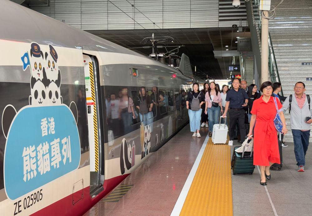 4月27日,往返深港的高鐵列車停靠在深圳北站站臺。新華社發(fā)