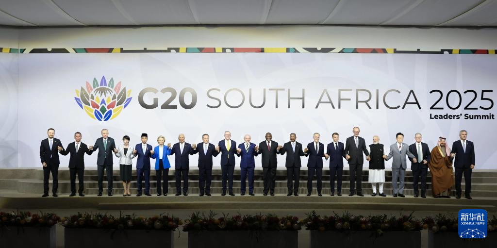 當?shù)貢r間11月22日,國務(wù)院總理李強在約翰內(nèi)斯堡出席二十國集團領(lǐng)導人第二十次峰會第一階段會議,就“包容和可持續(xù)經(jīng)濟增長”議題發(fā)表講話。這是與會領(lǐng)導人集體合影。新華社記者 黃敬文 攝