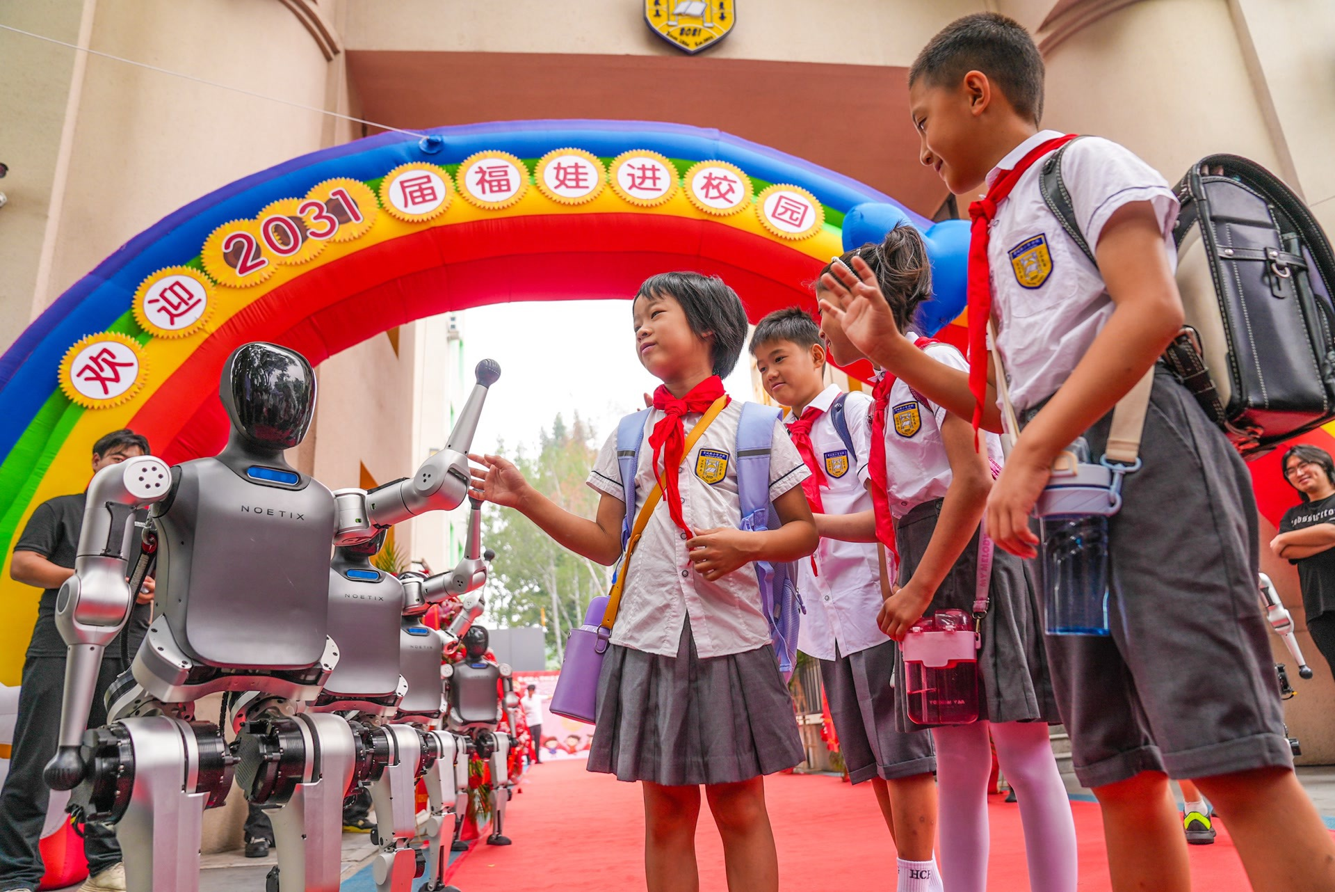 智能機器人與師生共迎新學期。