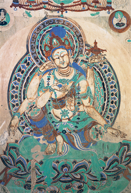 ▲莫高窟第384窟,北壁佛龕外東側(cè)繪制的如意輪觀音。(圖片來源:敦煌研究院官網(wǎng))