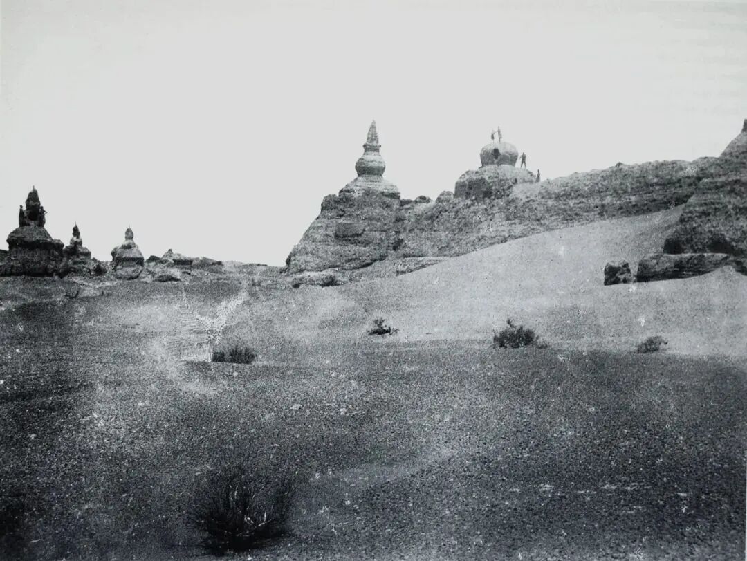 ▲黑水城城墻西北角的佛塔(1908年)。(圖片來源:澎湃網(wǎng))