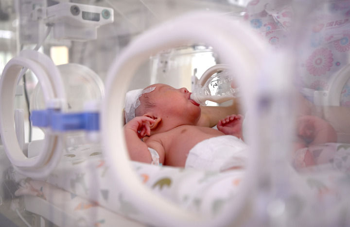 2024年6月1日,在西安國際醫(yī)學(xué)中心醫(yī)院新生兒科病房,護(hù)士為新生兒喂奶。新華社記者 劉瀟 攝