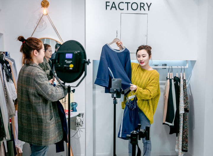 在常熟服裝城,商家在進行網(wǎng)絡(luò)直播銷售(資料照片)。新華社發(fā)