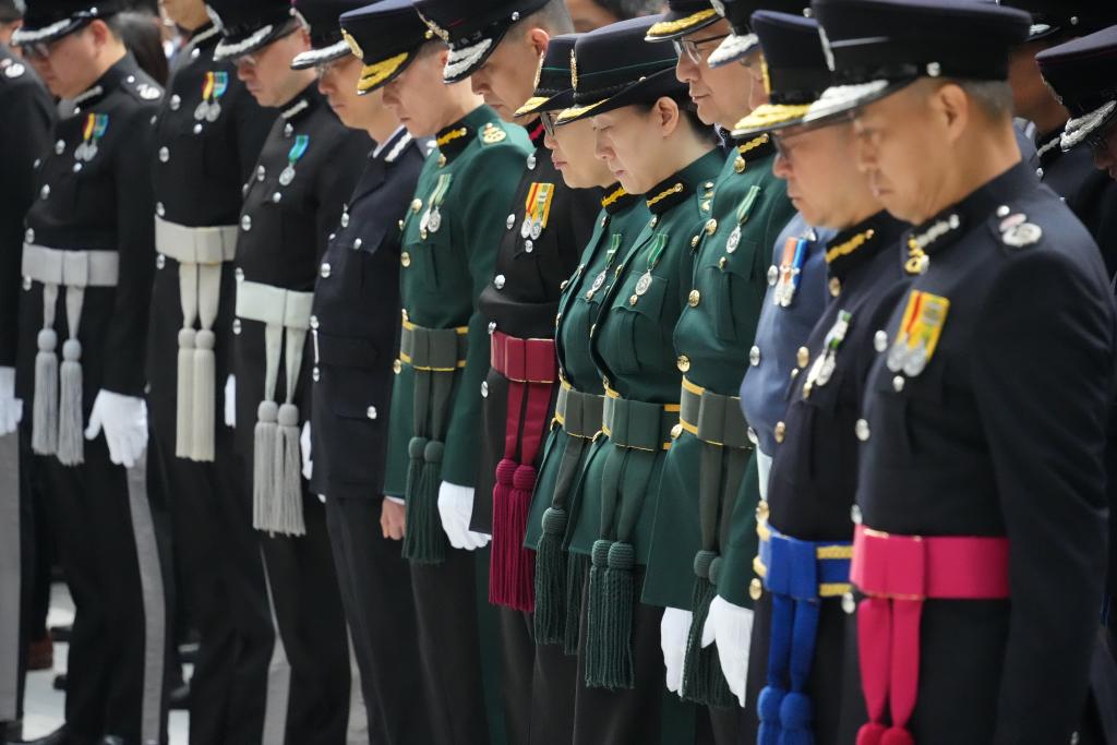 同日上午,中央政府駐香港聯(lián)絡(luò)辦、駐港國家安全公署、外交部駐港特派員公署、解放軍駐港部隊等也舉行下半旗和默哀儀式。