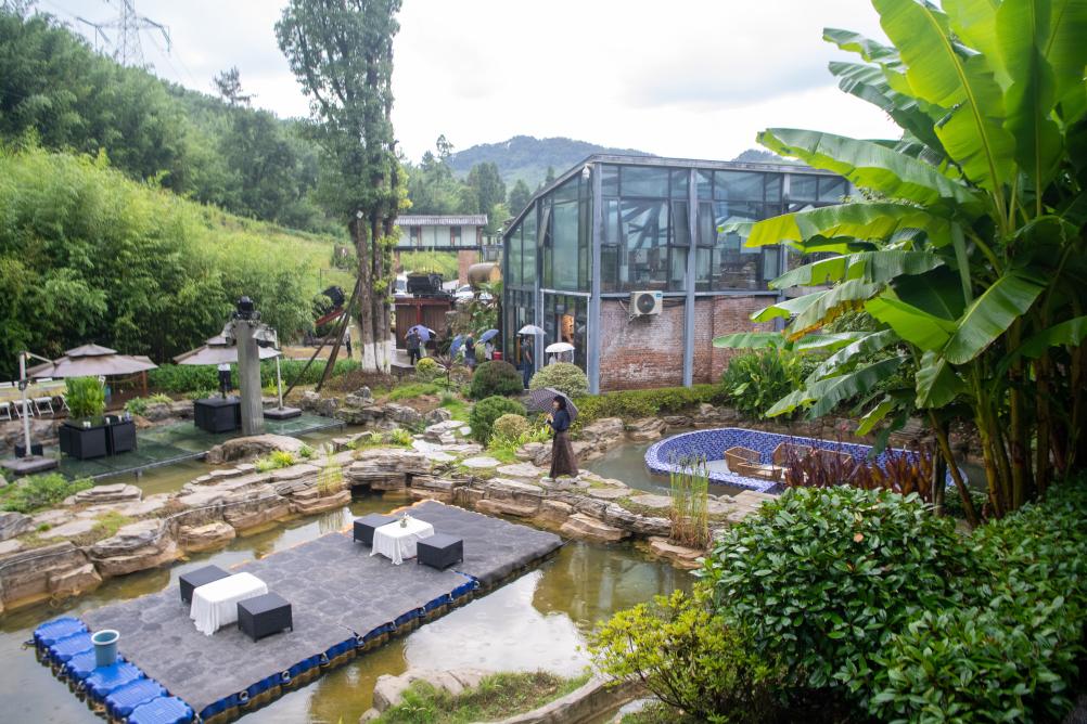 2025年8月15日拍攝的用礦山遺址改造的民宿。近年來,重慶市梁平區(qū)竹山鎮(zhèn)獵神村立足自然資源優(yōu)勢,積極推動林業(yè)相關產業(yè)融合發(fā)展,將原有礦山塌陷區(qū)域進行功能重構和空間再塑,打造有山有水的小微濕地群落。新華社記者 唐奕 攝