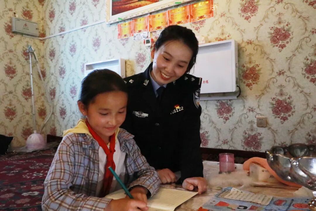 “西極愛心小分隊”家訪后了解到阿麗娜的家庭情況,民警沈美穎便成為這位柯爾克孜族姑娘的“知心姐姐”,多次到家中輔導(dǎo)功課,通過聊天談心鼓勵阿麗娜認(rèn)真學(xué)習(xí)。