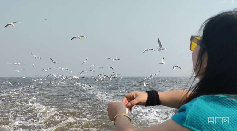 游客在漁船上喂海鷗(央廣網(wǎng)見(jiàn)習(xí)記者 安適存 攝)