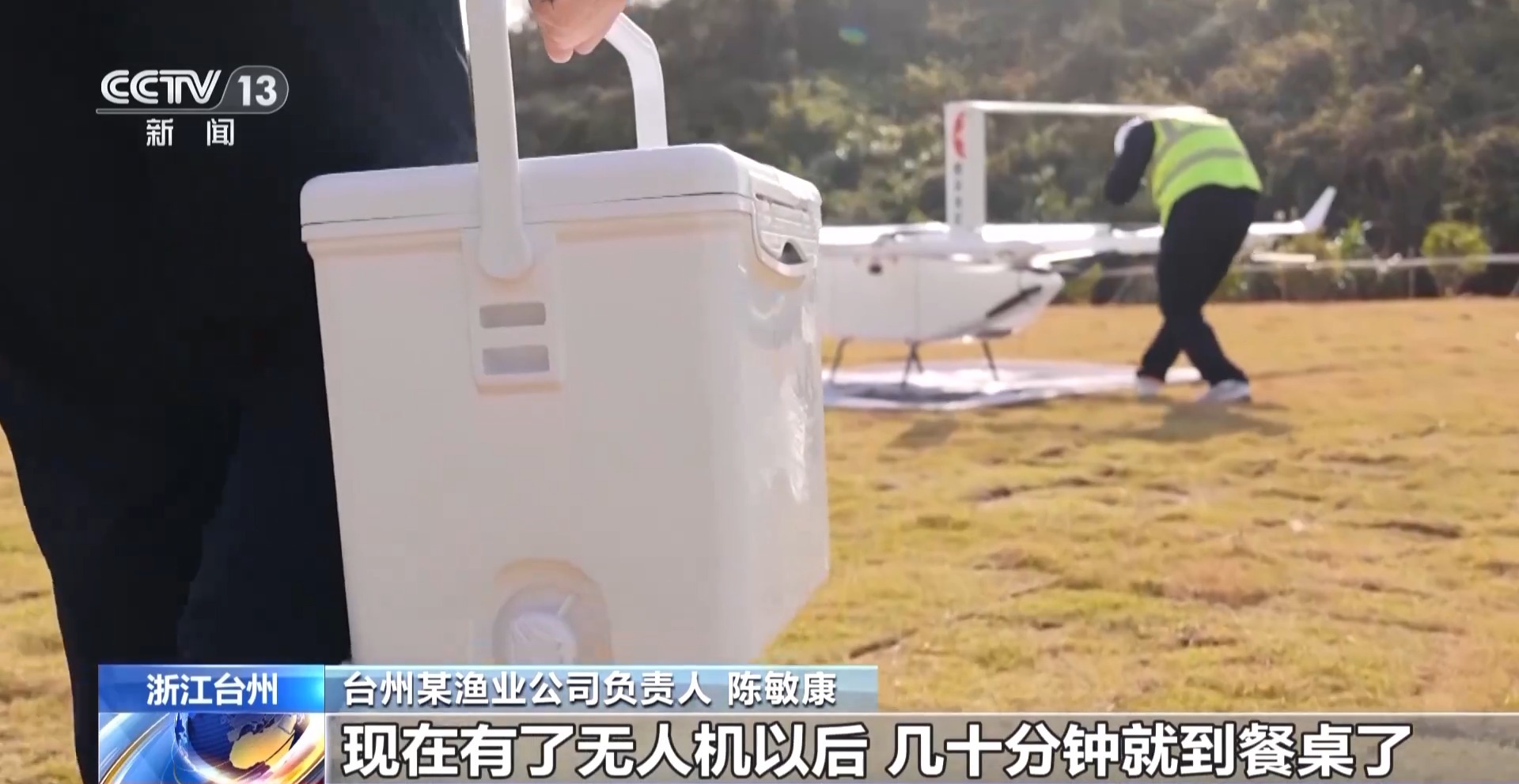 臺州某漁業(yè)公司負責人 陳敏康:以前我們魚捕上去運到了市區(qū)都要好幾個小時,現(xiàn)在有了無人機以后,幾十分鐘就到餐桌了?,F(xiàn)在無人機的運輸量比較小,但我們來看這個前景是比較好的,這也為我們島上的漁民開拓了致富的新路子。