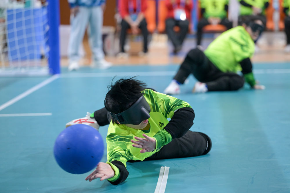 12月8日,在廣州舉行的全國(guó)第十二屆殘疾人運(yùn)動(dòng)會(huì)暨第九屆特殊奧林匹克運(yùn)動(dòng)會(huì)盲人門球項(xiàng)目女子組小組賽中,浙江隊(duì)13:3戰(zhàn)勝上海隊(duì)。新華社記者 胡智軒 攝