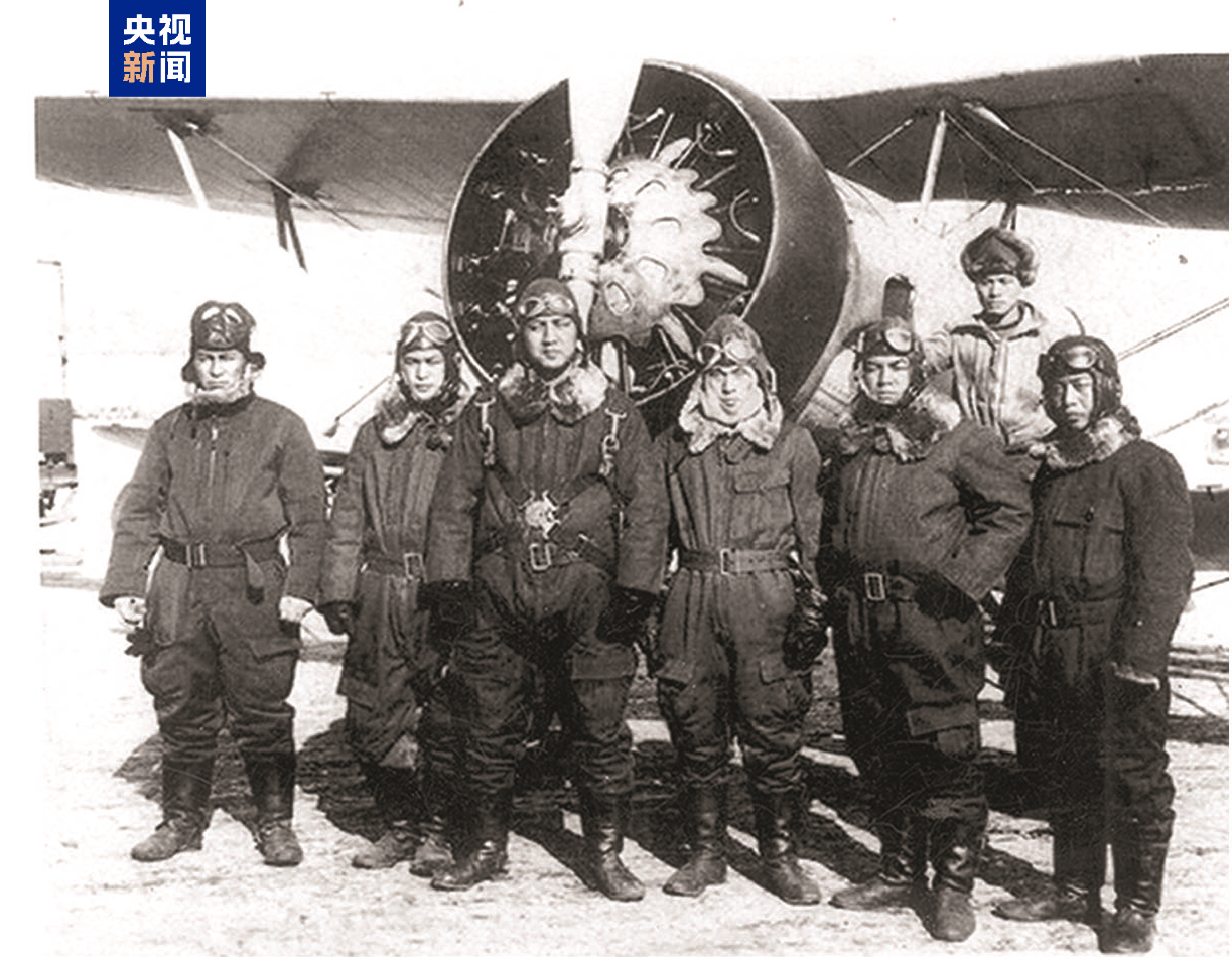 △七三一部隊(duì)航空班成員,左三為負(fù)責(zé)在常德上空撒鼠疫菌的增田美保(圖片由侵華日軍第七三一部隊(duì)罪證陳列館提供)