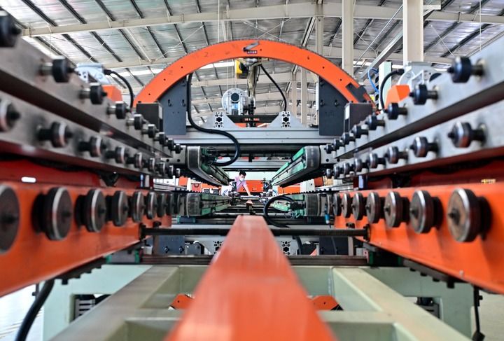 2025年6月18日,河北省唐山市蘆臺經濟開發(fā)區(qū)一家采暖設備企業(yè)的工人在生產線上工作。新華社記者 楊世堯 攝