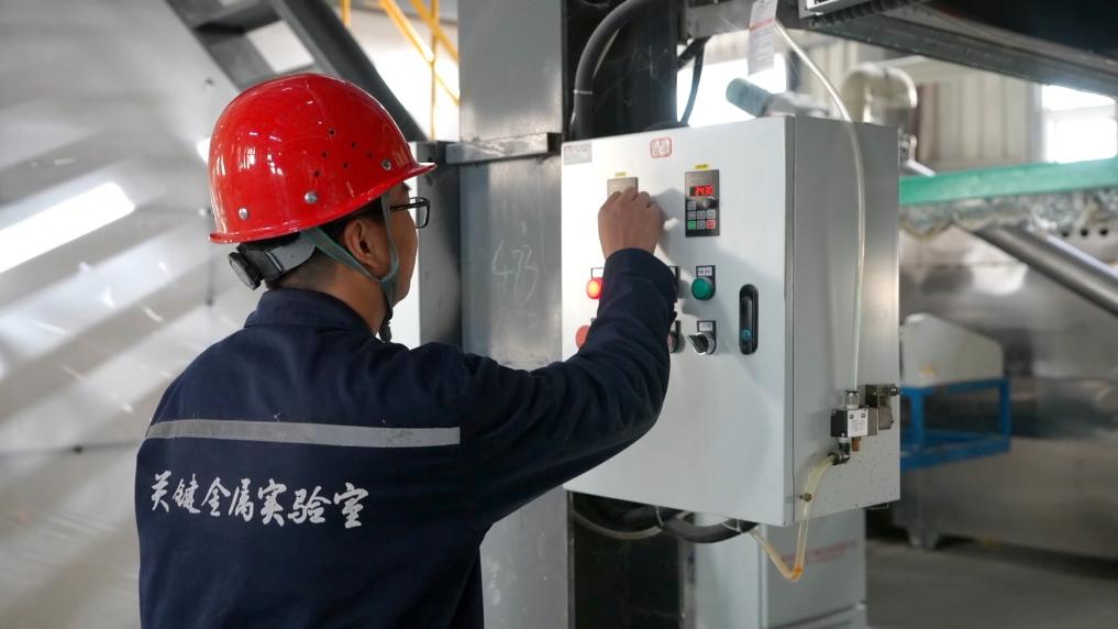 在三門(mén)峽中原關(guān)鍵金屬實(shí)驗(yàn)室無(wú)氨氮鉬冶金中試項(xiàng)目現(xiàn)場(chǎng),實(shí)驗(yàn)人員正在進(jìn)行數(shù)據(jù)采集等工作。
