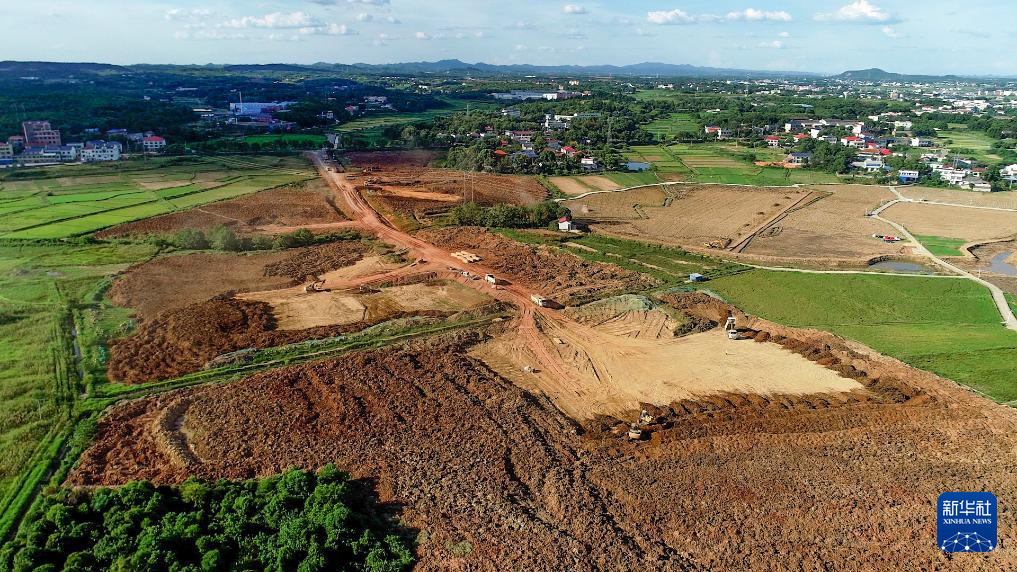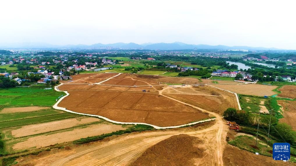 這是2022年8月31日拍攝的瀏陽市永安鎮(zhèn)豐裕村嚴格管控區(qū)地塊覆土作業(yè)現(xiàn)場(無人機照片)。新華社發(fā)(鄒禮卿 攝)
