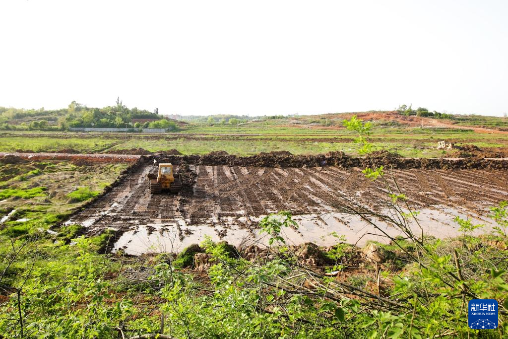 2022年4月7日,長沙機場改擴建項目被占耕地在進行耕作層剝離作業(yè)。新華社發(fā)(鄒禮卿 攝)