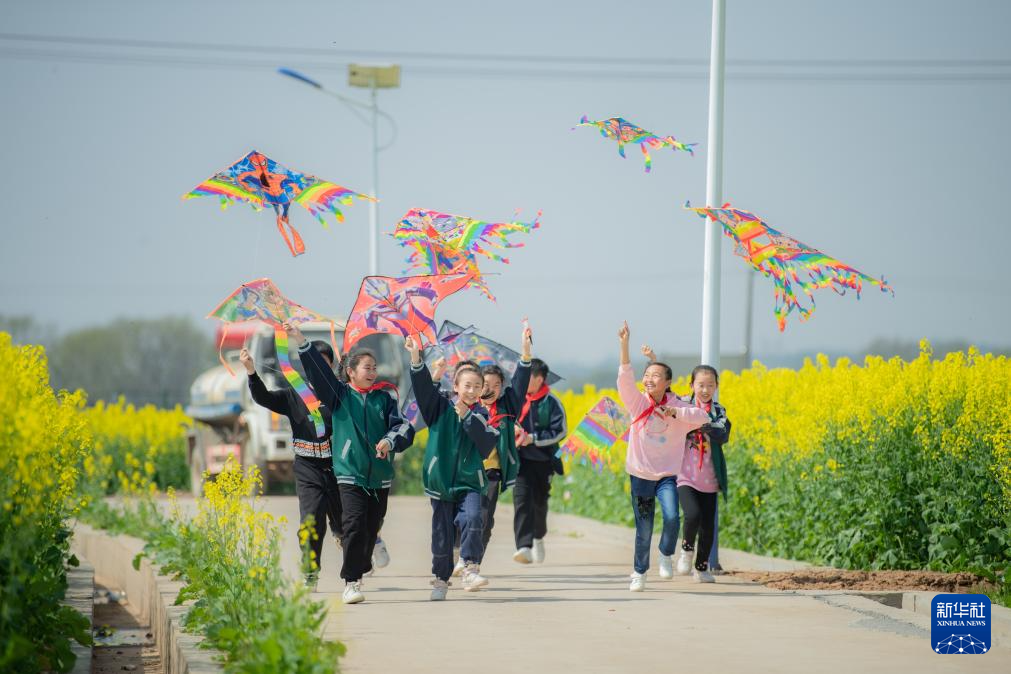 2023年3月10日,孩子們在瀏陽市永安鎮(zhèn)豐裕村放風箏。新華社發(fā)