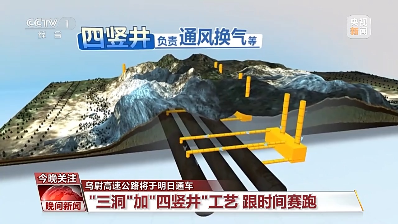 22.13公里,長度約為5座南京長江大橋的總和,要在天山中打通這樣的一條隧道,中國的建設者是如何啃下這塊硬骨頭的呢?和以前挖隧道大多采用“雙洞對挖”的方式不同,這次天山勝利隧道為了跟時間賽跑,采用“三洞”加“四豎井”工藝。
