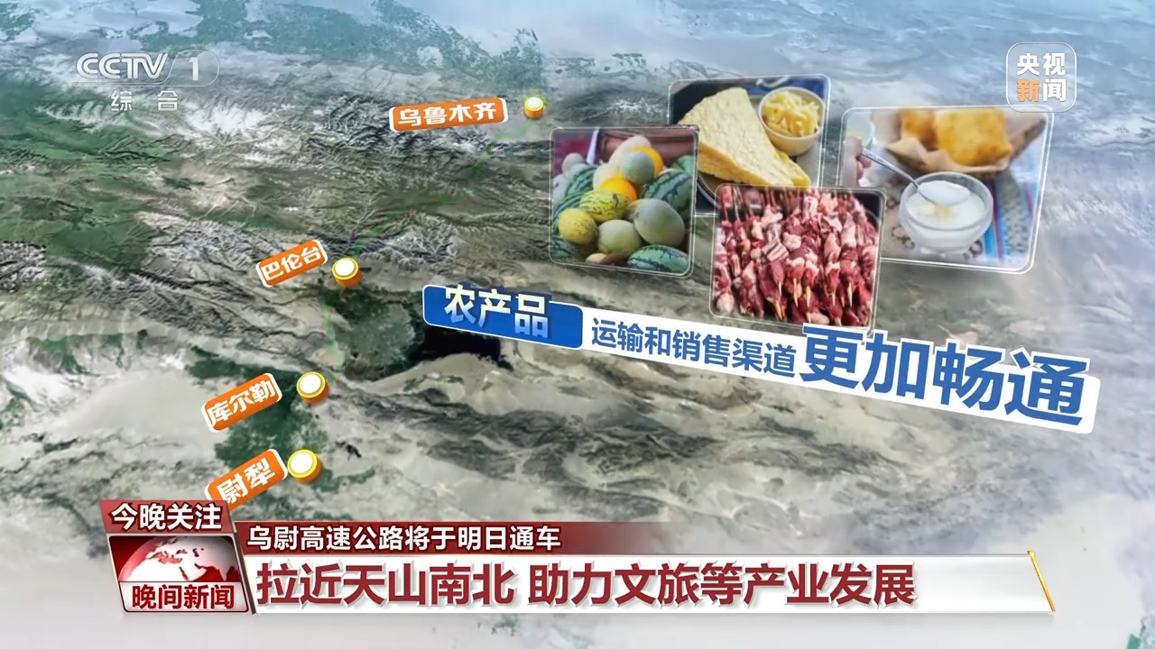 烏尉高速通車后,從烏魯木齊市至庫爾勒市駕車時長,由此前的7小時縮短至3.5小時,農產品運輸和銷售渠道更加暢通,新鮮的牛羊肉、乳制品、瓜果能迅速抵達城市餐桌,對游客來說,早餐烏魯木齊,午嬉孔雀河,傍晚歸家不是夢,一日內體驗南北疆迥異風情的愿望將得以實現。