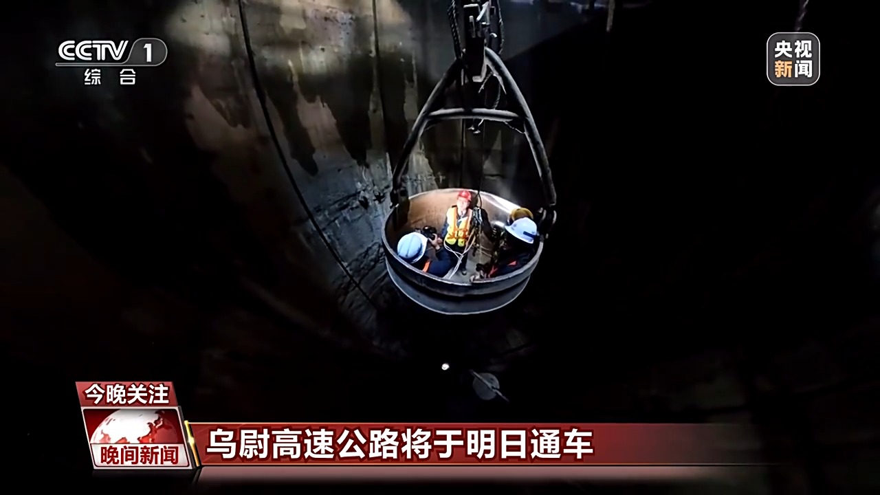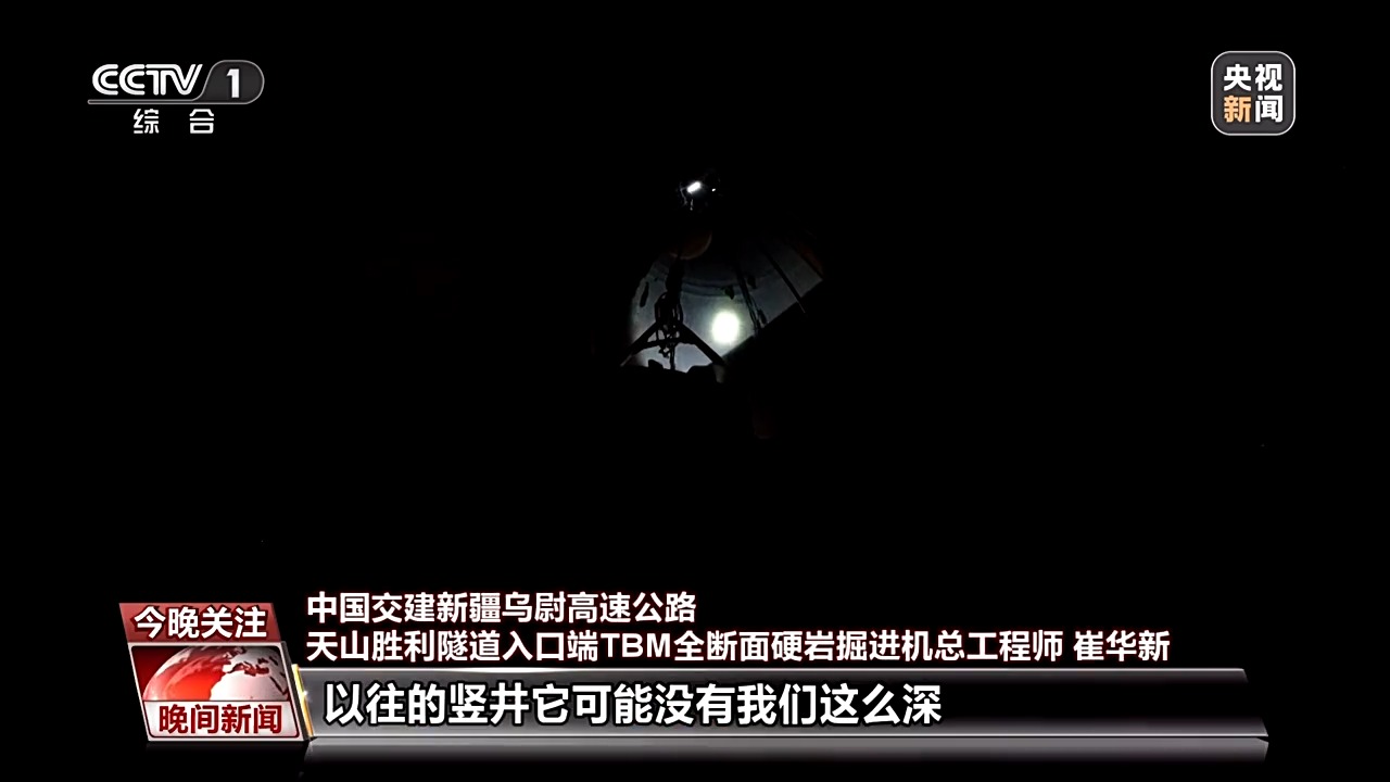 中國交建新疆烏尉高速公路天山勝利隧道入口端TBM全斷面硬巖掘進機總工程師 崔華新:現在我們所處的位置,是我們豎向掘進機開挖完成之后,我們豎井的最后一道工序也就是二襯。隨著我們的施工進度不斷提高,我們經歷黑暗的時間也是越來越短的。